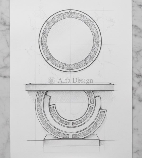 - Size 43″inch Silver Mirror Console Table with 33inch Dia Round Crystal Mirror, Luxurious Console Table and Mirror Set: Includes a mirrored console table and a sparkling round wall mirror, both designed to brighten and enhance your living space. The unique geometric shape and crushed diamond inlay not only highlights the nobility of the furniture, but also gives a sense of the classic beauty of the years precipitation.