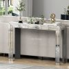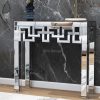 - Luxury Alfa Design: High-quality Materials: The silver console table is made of solid MDF andmirrored glass. The beveled glass is carefully polished, smooth, safe and easy to clean