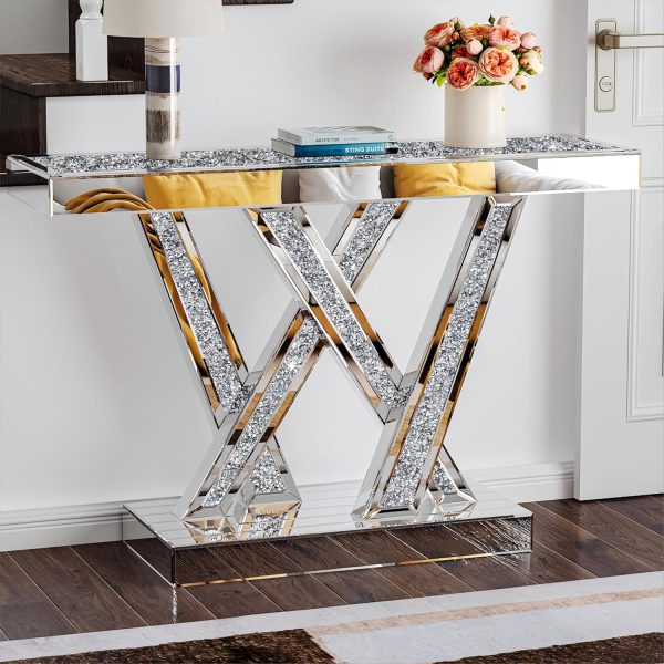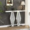 - Size 47.24″L x 13.78″D x 31.5″H Luxurious Console Table : Beautiful Appearance: Featuring a HD silver mirror finish and luxurious elements of sparkling diamonds, this mirrored console table is a beautiful addition to any of your rooms. It is sure to impress