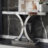 - Luxury Alfa Design: High-quality Materials: The silver console table is made of solid MDF andmirrored glass. The beveled glass is carefully polished, smooth, safe and easy to clean