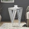 - 【Mirrored End Table】: Mirrored round end table is highly reflective and adds dimension to the space. The crystals on it are shiny and twinkle. It’s so pretty and elegant! perfect for living room / bedroom.