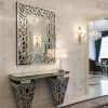 - Size 36″inch Silver Mirror Console Table with 50″ x 30″ inch Venetian Mirror, Luxurious Console Table and Mirror Set: Includes a mirrored console table wall mirror, both designed to brighten and enhance your living space. The unique geometric shape and crushed diamond inlay not only highlights the nobility of the furniture, but also gives a sense of the classic beauty of the years precipitation.