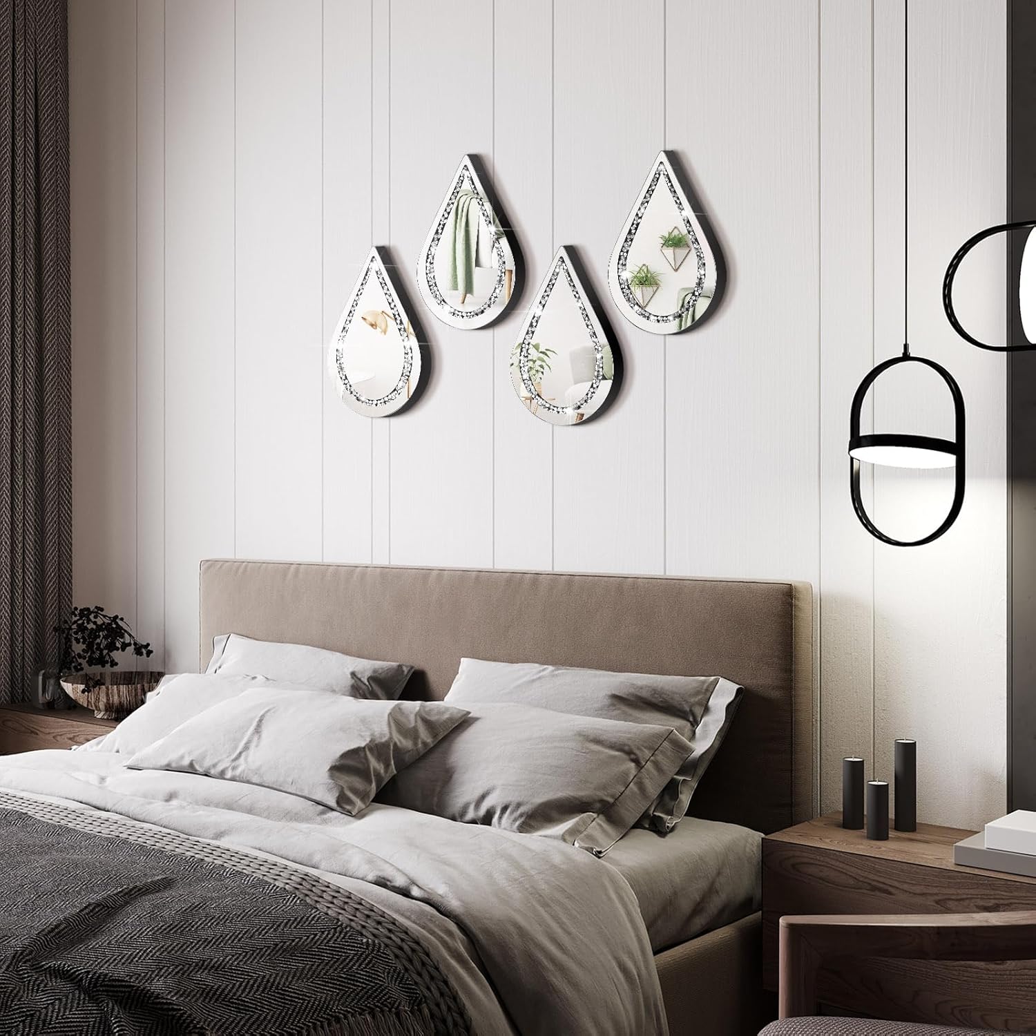 4 Pcs Silver Mirror Wall Decor Tear Drop 11.8 x 6.7 Inches