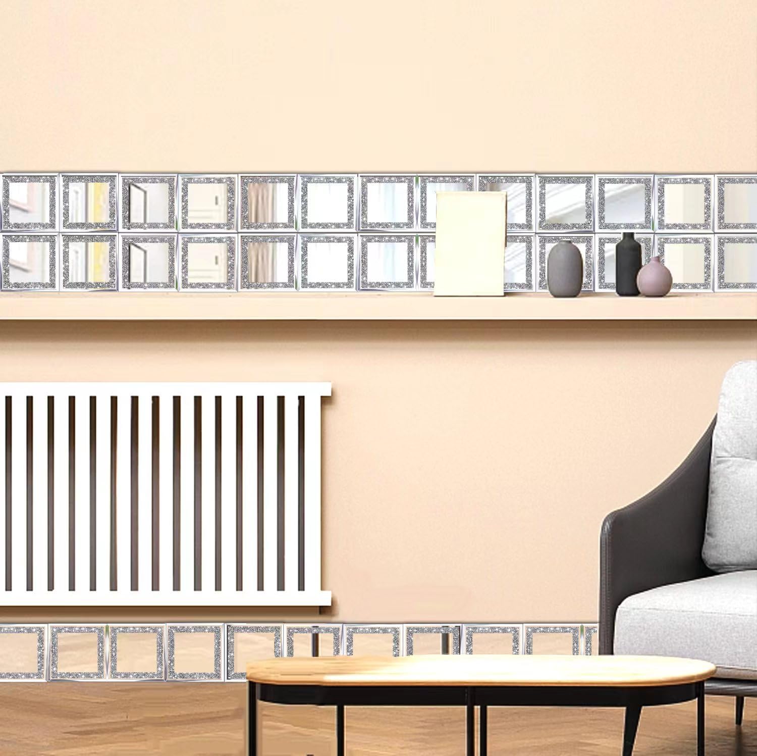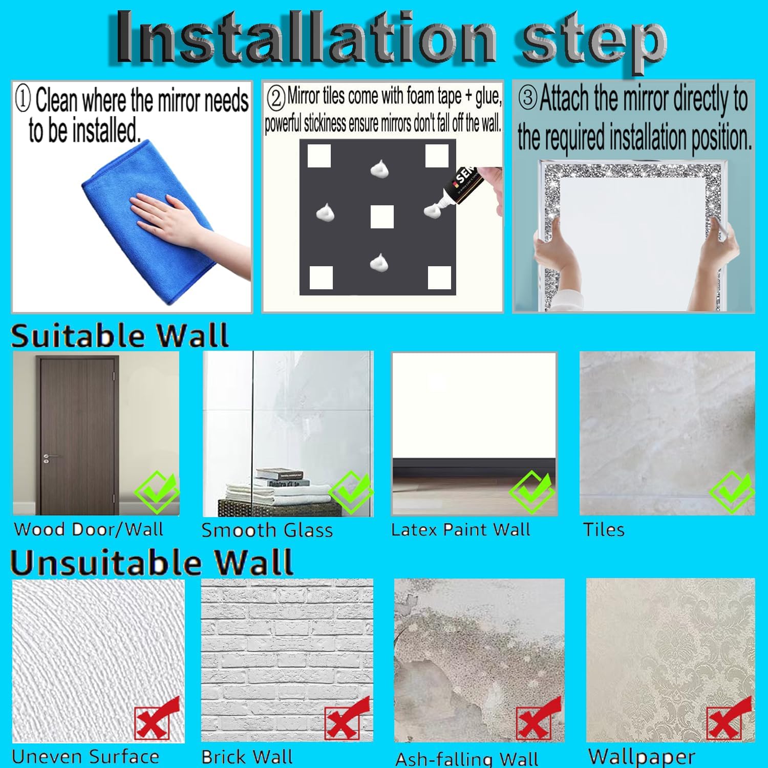 - Luxury Alfa Design: CREATE A STYLISH: This silver wall decor Crush Diamond Mirrors Peel& stick design can horizontally or vertically, it is flexible to install and easy to DIY