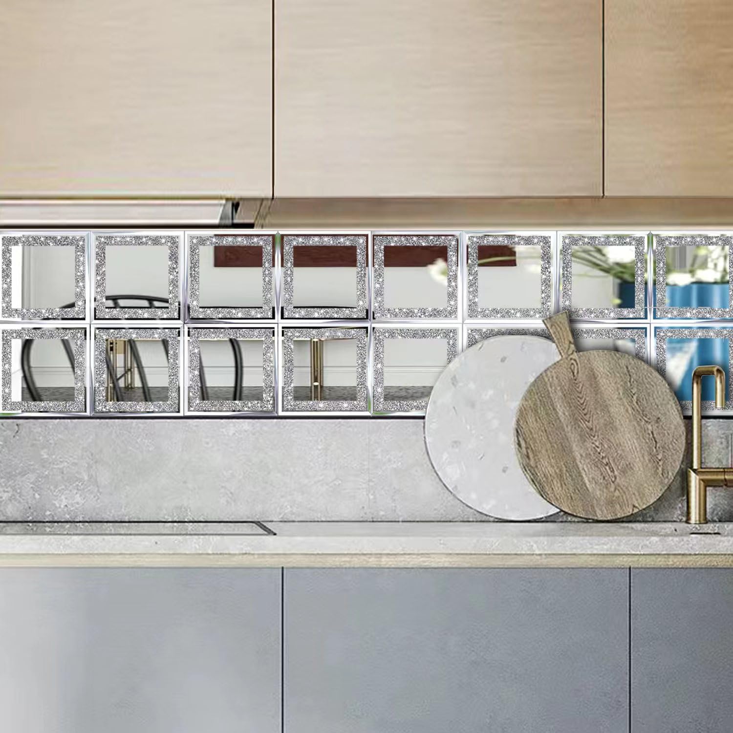 - HOME DECOR: MIRROR TILES: Crush Diamond Mirrors Wall Decor tiles will blend and highlight any home, office, wall decor, and room decor; ideal for mosaics, collages, DIY decorations, and art projects.