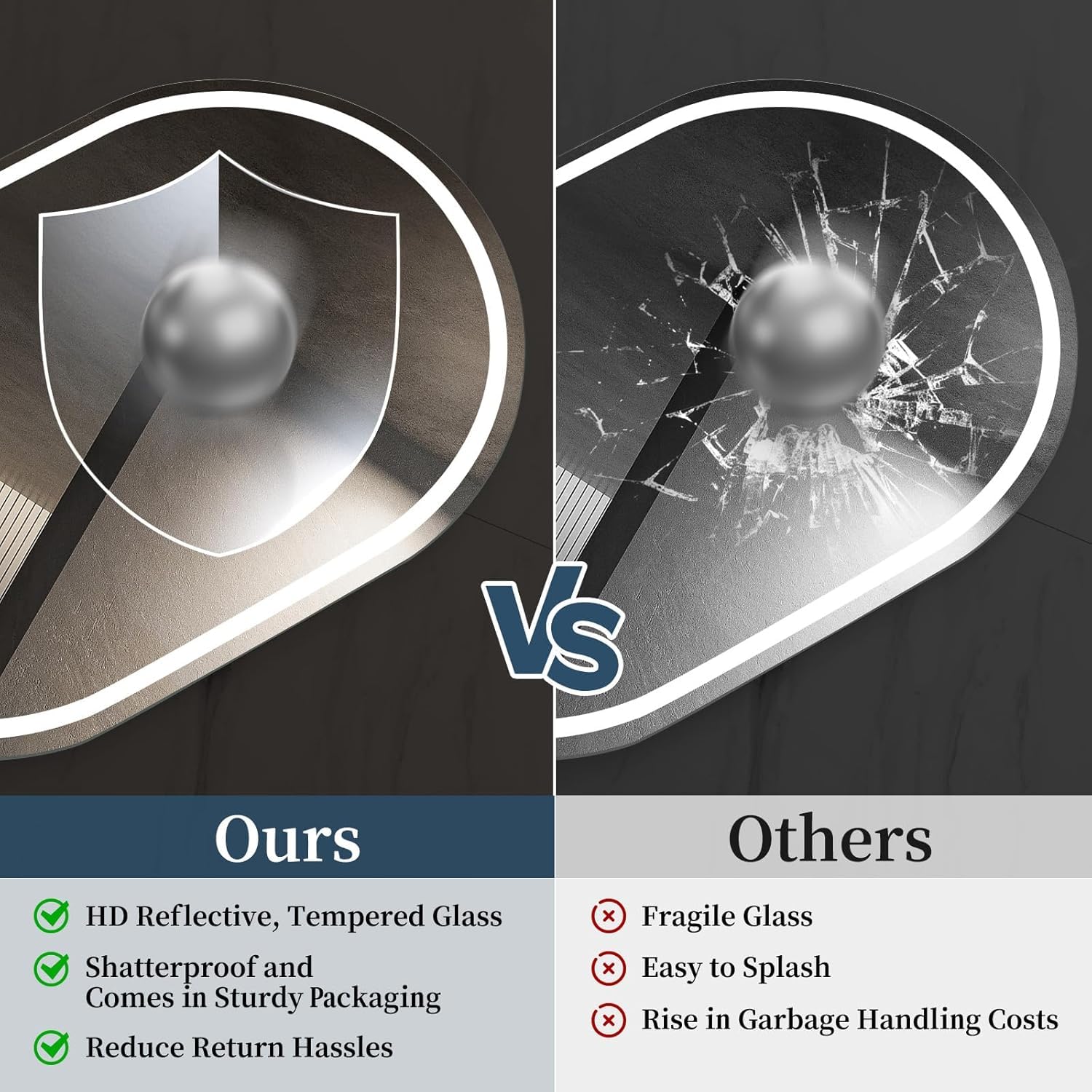Spot-Free Finish: Avoid harsh chemicals or ammonia-based cleaners that can damage the surface or silver backing.