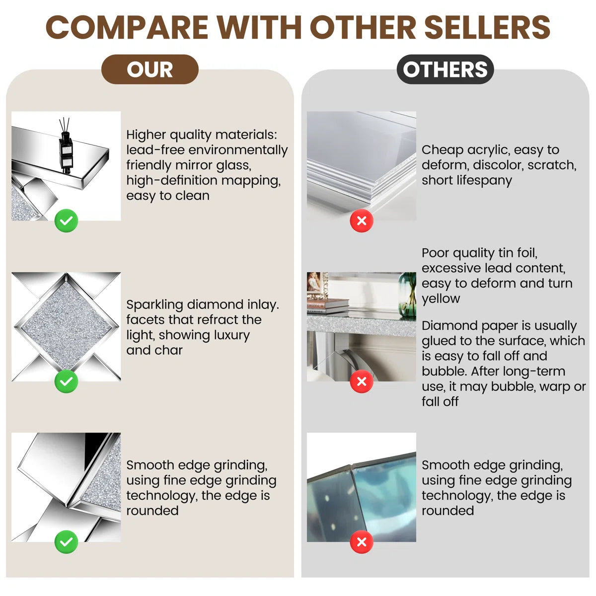 - Luxurious Console Table and Mirror Set: Includes a mirrored console table wall mirror, both designed to brighten and enhance your living space. The unique geometric shape and crushed diamond inlay not only highlights the nobility of the furniture, but also gives a sense of the classic beauty of the years precipitation.