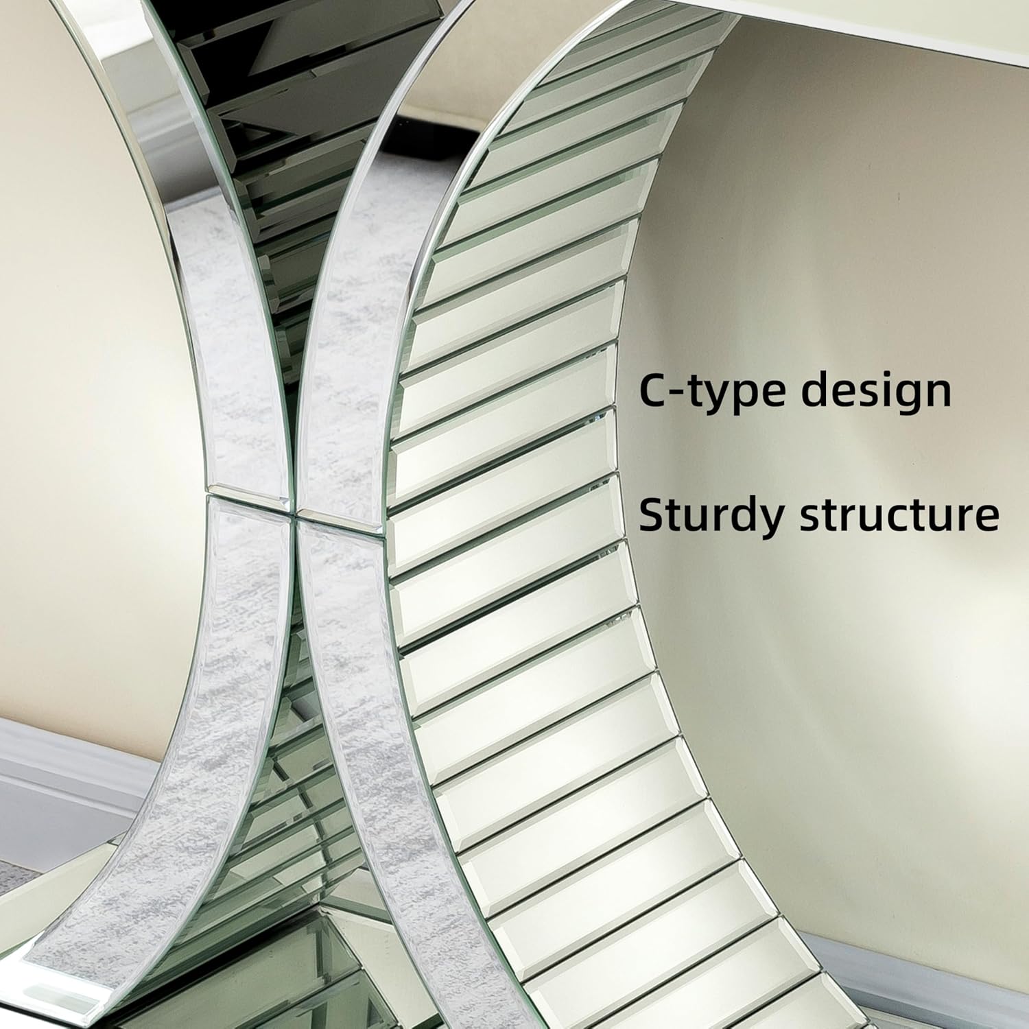 - Luxury Alfa Design: High-quality Materials: The silver console table is made of solid MDF andmirrored glass. The beveled glass is carefully polished, smooth, safe and easy to clean