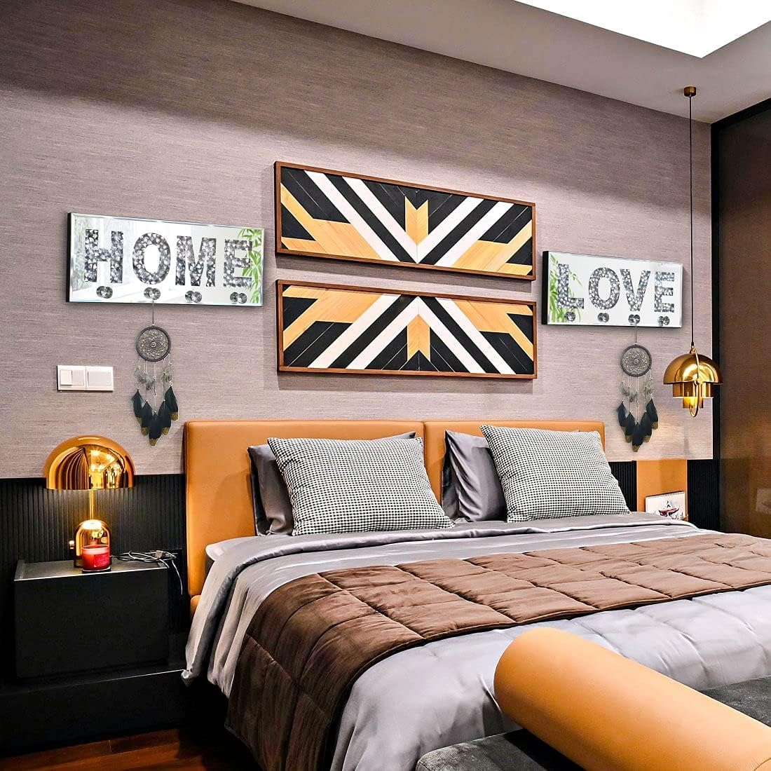 - ATTRACTIVE Diamond Dimension and Material : Mirrored LOVE Letter Plaque Sign key hanger Overall size 15"×5.9", 4 Crystal clear diamond handle hooks are 0.79" in diameter, 0.75" in height. High-quality beveled silver mirror on top, with luxurious crushed diamond shape in LOVE, Shiny sparkly. Back with strong MDF construction.
