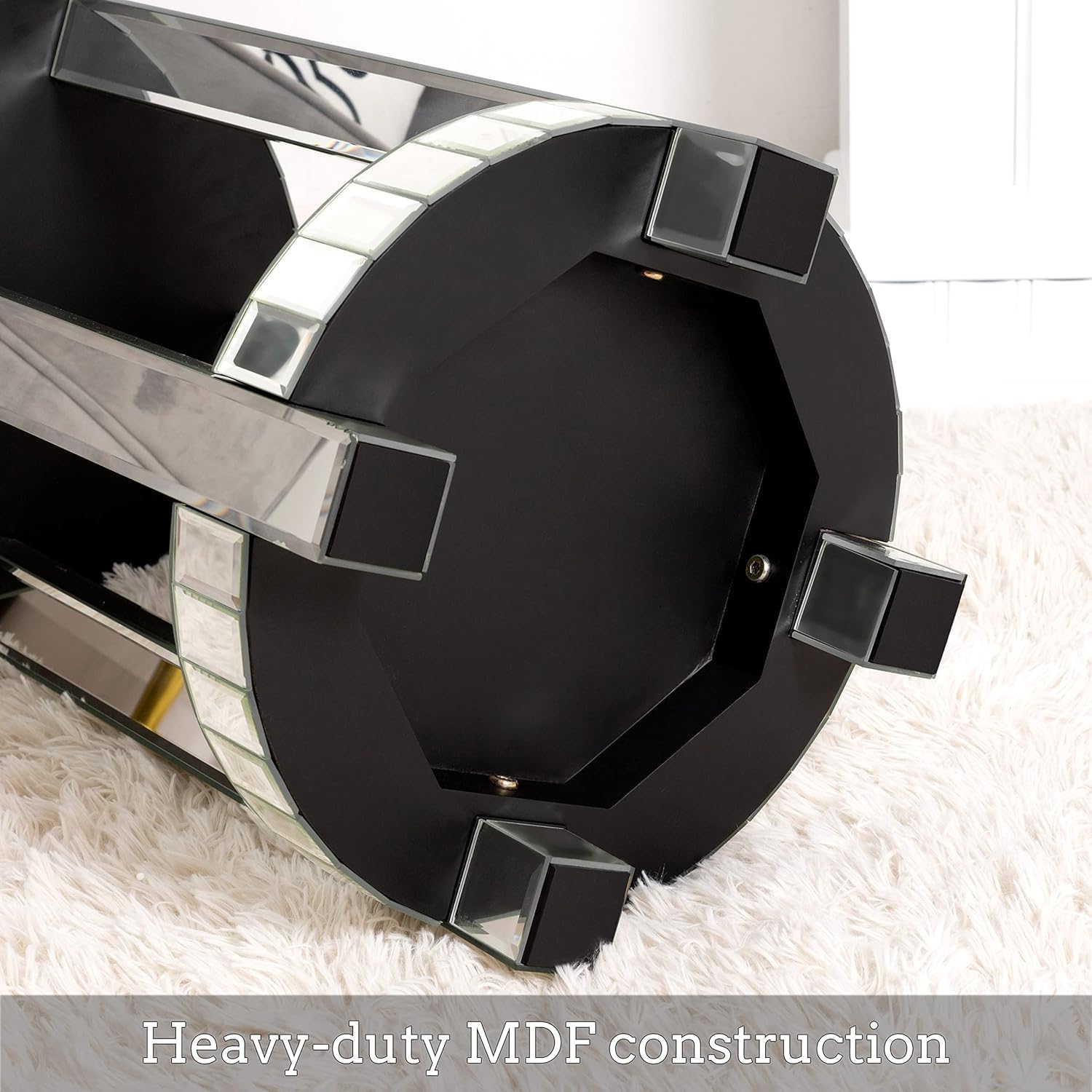 - 【Stable Construction】: The round side table is made of solid MDF and HD mirrored look, which is heavy and quality. The crushed crystal shelf holds the 4 legs at the bottom so it won't wobble.