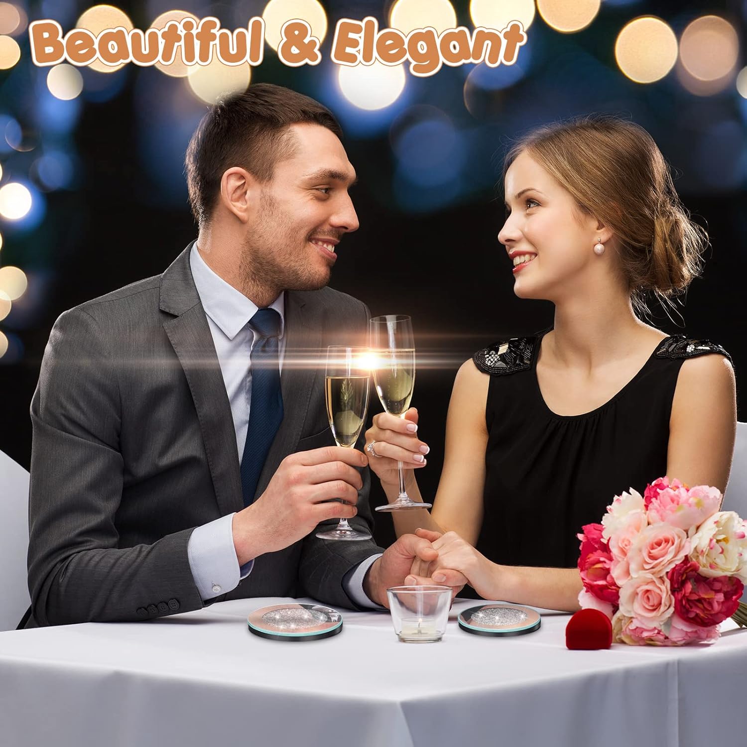 - UNIQUE DECOR: The sparkling glass coaster 4-piece set is the best choice for you and your friends Create a comfortable moment when drinking wine,coffee or tea.The back of the coaster is made of felt material that will never scratch the tabletop, and it can be non-slip for sure.